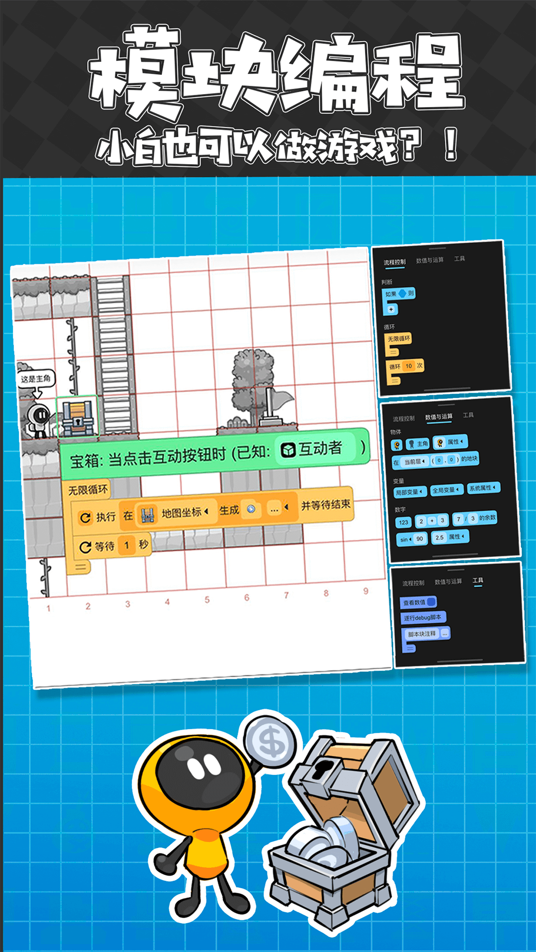 1、十分适配新手入门:创游世界对缺乏编程基础的人群十分友好,其操作方式简便易懂,用户仅需把游戏素材拖拽至合适位置即可完成操作。