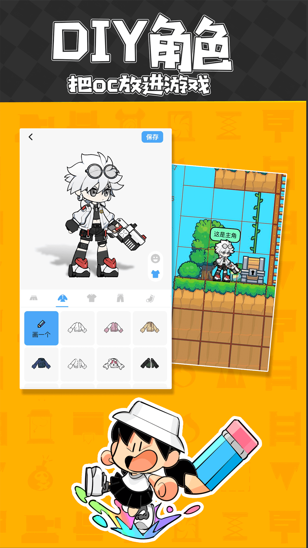 无论是主题背景、人物角色、机关障碍、道具还是头像,全都能随时随地自由创作!而且你还可以把自己制作的素材作品提交到商店,分享给其他创作者使用或继续创作。