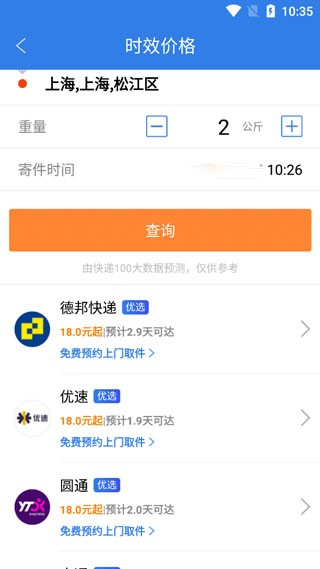 4.人性化服务体验:支持快递预约上门取件,一键快速解决寄件需求;同时提供费用预估,帮助用户合理规划成本。