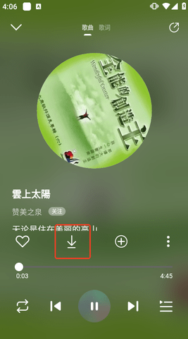 2、进入歌曲详情页,点击「」按钮,选择音质(如标准、高品质、无损)后确认。