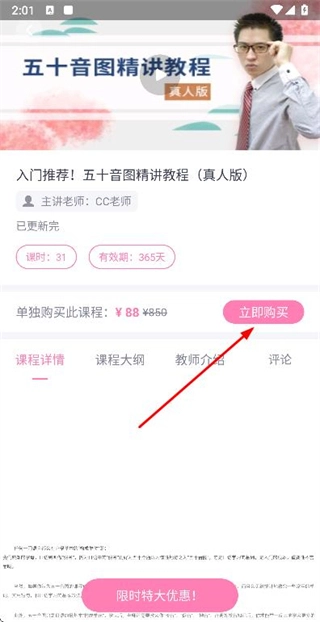 3、在课程详情页面点击立即购买按钮,完成该课程的购买操作。