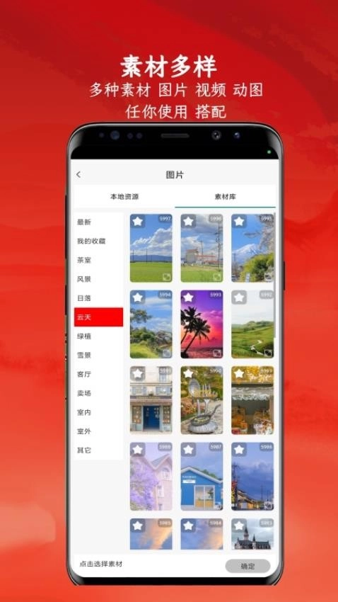 5、用户也可以对多样素材进行选择,搭配自己的视频作品。