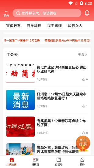在“自身建设”板块里,用户能够查看油田公司工会的建家成果、工会调研、竞赛培训以及工会建设等相关内容。