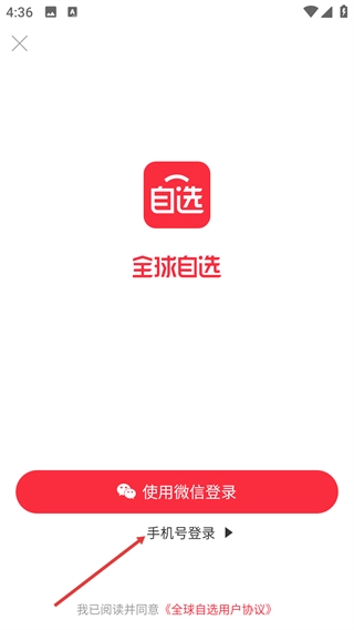 1、这是“全球自选”平台的登录界面,该平台专注于跨境自选类服务,提供【微信登录】与【手机号登录】两种途径。