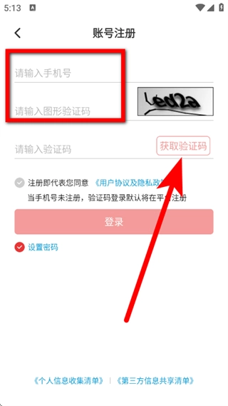3、在账号注册页面,输入手机号,输入右侧显示的图形验证码,点击获取验证码。