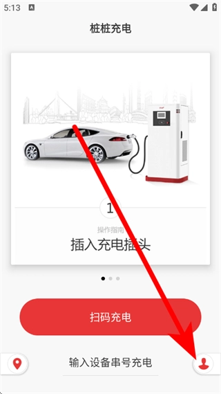 1、打开桩桩充电,点击右下角的个人中心图标,进入登录页面。