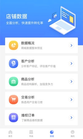 5、数据监控:每日可查看自身店铺的相关信息,涵盖商品、用户信息等内容,助力你更精准地制定经营决策。