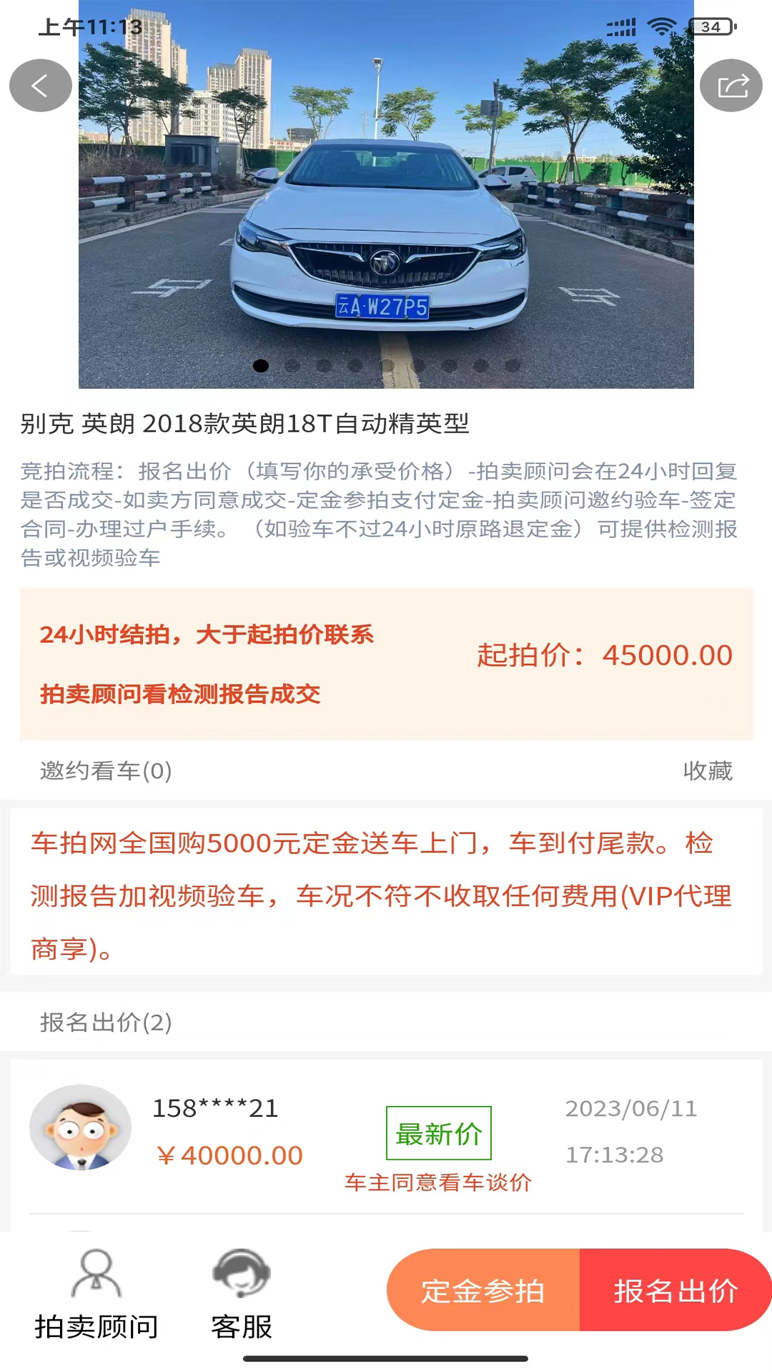 在看到自己想买的车辆后,可以在线报名出价,参与到该车的拍卖中。