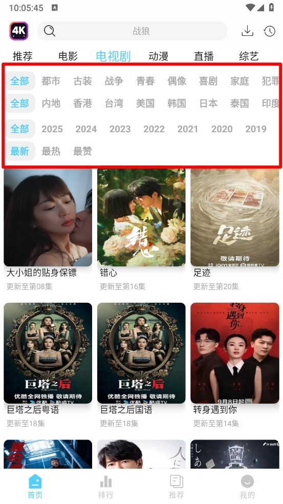 2、如图,根据题材、年份、热门等筛选所需的剧集。