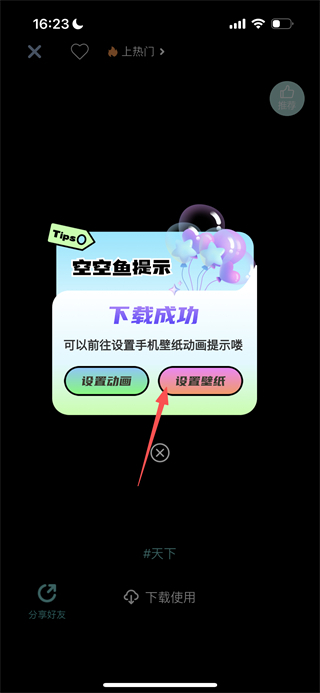 4、成功后,在提示弹窗中点击设置壁纸,即可设置成动态壁纸。