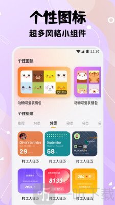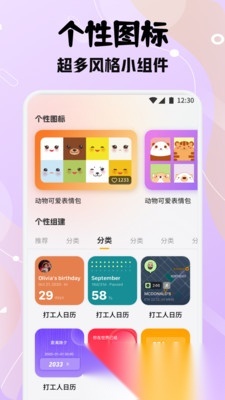 2. 配备各类趣味桌面小组件,涵盖时间、日历、图片、文字以及纪念日等多种类型。