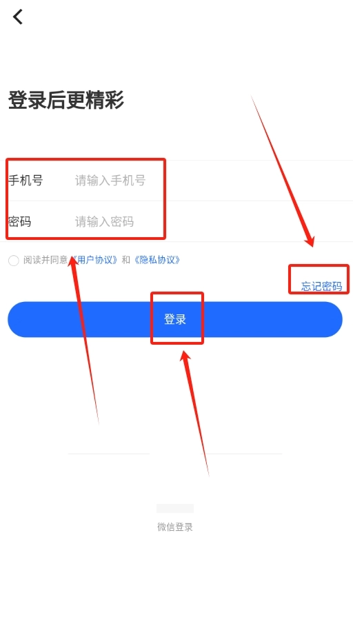 2、在登录页面,按照提示在相应位置输入你的注册手机号,以及设置好的登录密码,完成后点击登录。