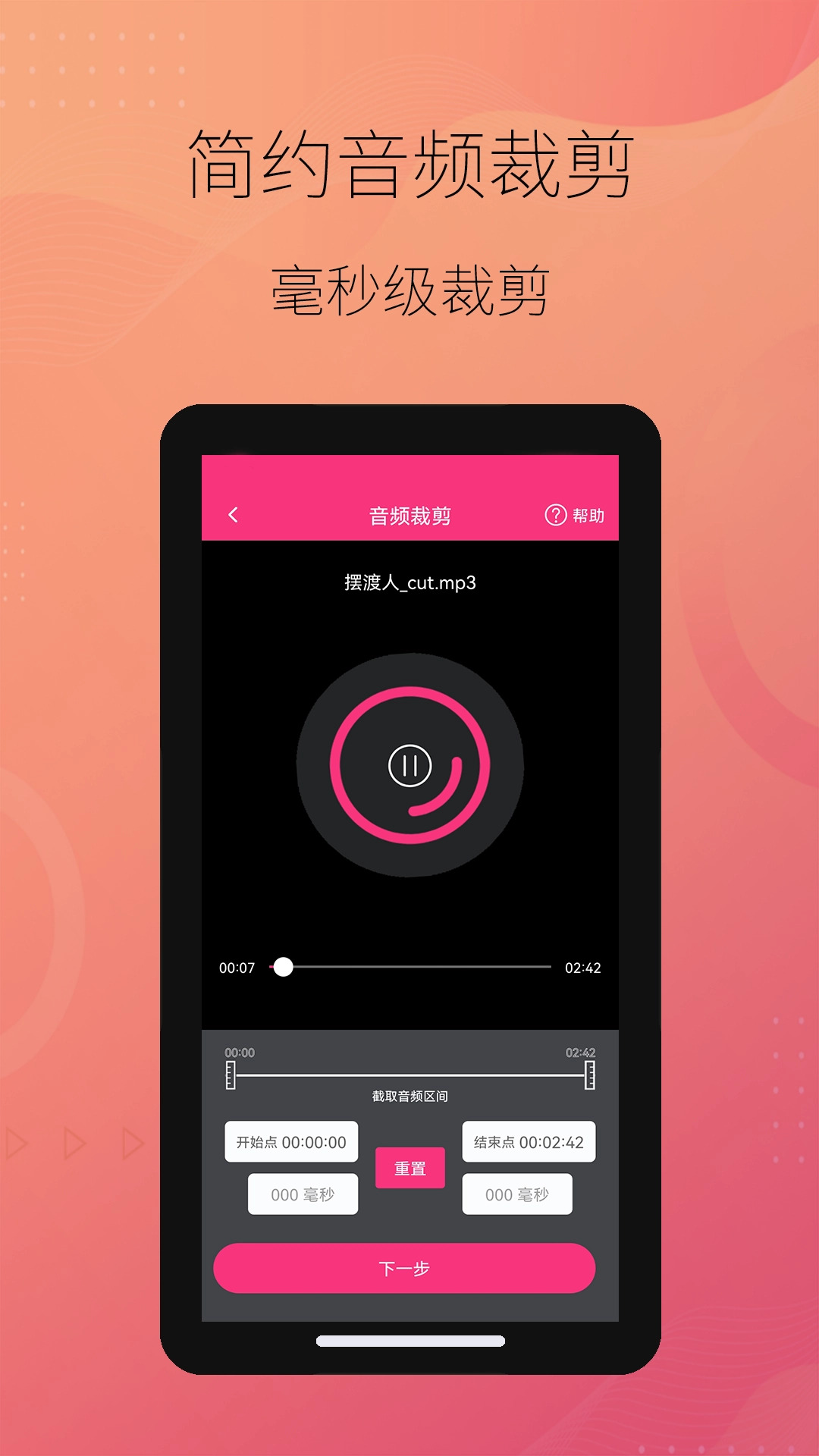 3.这款音频裁剪工具简约实用,能让你享受毫秒级的精准裁剪体验