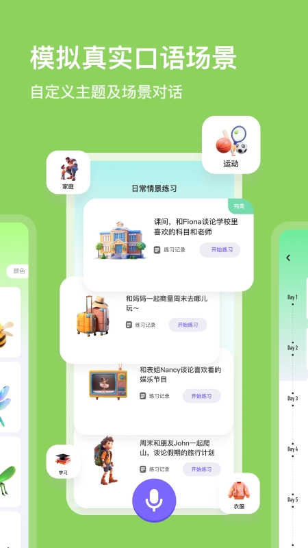 4.设有多样的情景对话练习板块,用户能够依据自身的兴趣偏好与实际需求,挑选心仪的情景开展对话互动。