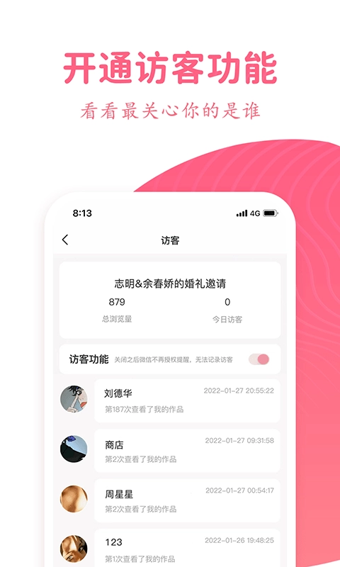 2、宾客回执:可及时接收好友的宾客祝福,还能便捷查看宾客回执的统计情况。