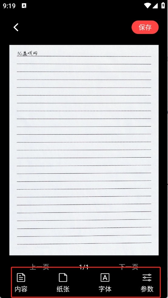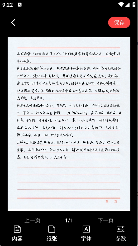 4、在页面里挑选纸张、字体并设置相关参数,待所有设置都完成后,再次点击右上角的“保存”按钮,就能完成整个操作流程了。