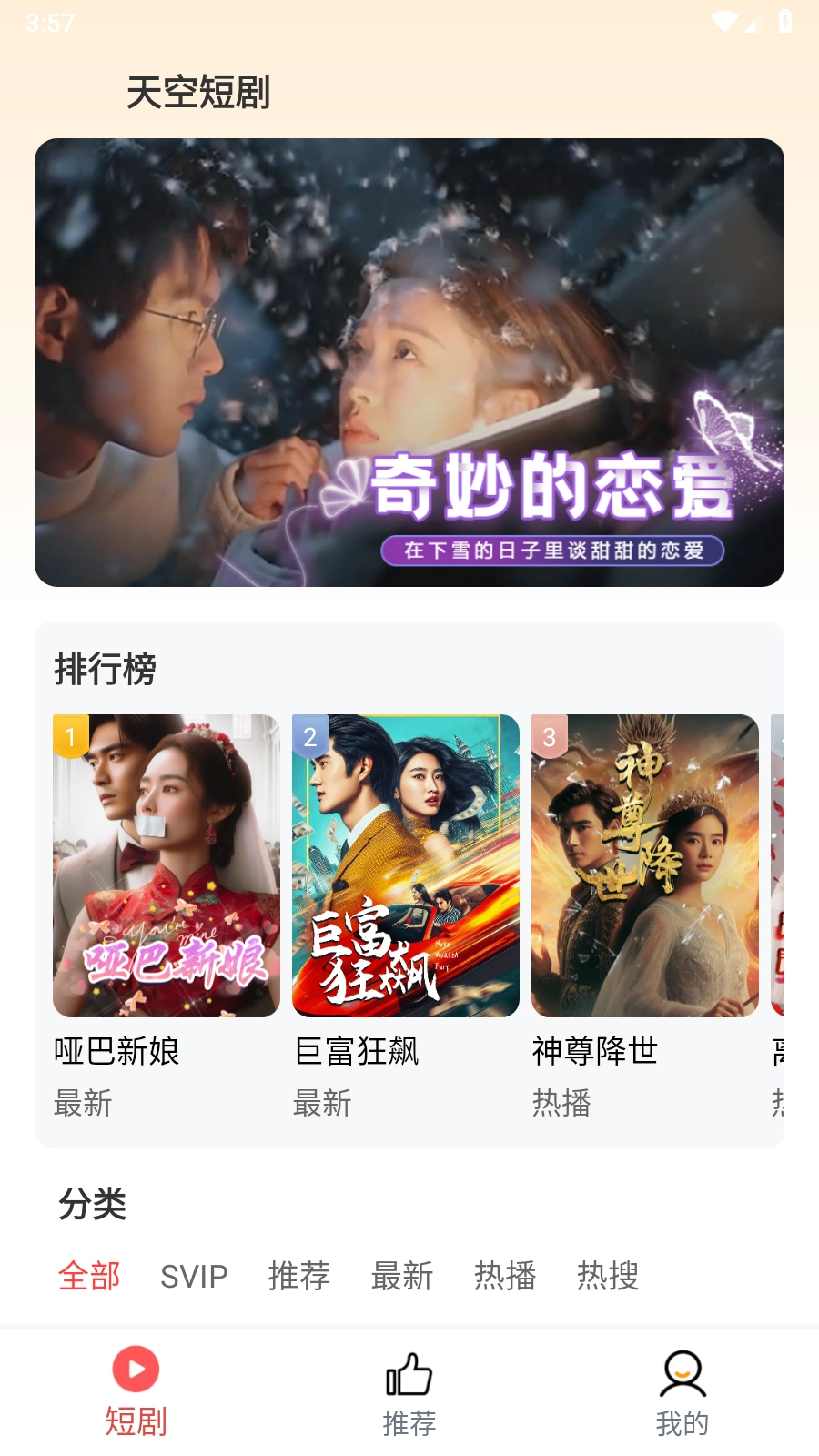 2.打开进入首页,可以看到各类短剧的推荐和分类