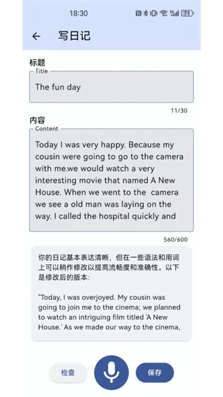 通过拼写或语音输入编写短文,智能检查学习成果。