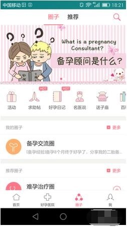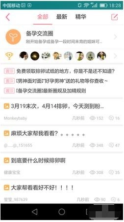 3、挑选你打算发布文章的圈子,这里我用备孕交流圈来举例,点击圈子名称进入,接着点击右上角铅笔样式的图标就行。
