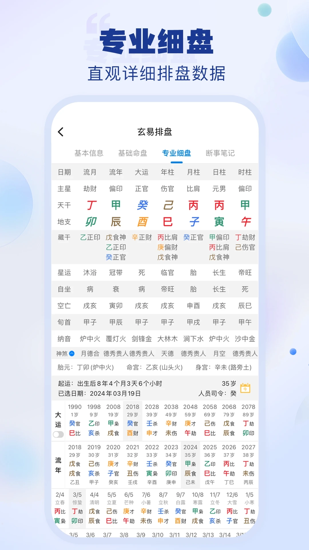 1.专业的八字排盘工具,所有数据内容直观且详细