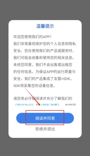 1、点击同意按钮以进入应用界面,接受相关条款并完成初始设置。