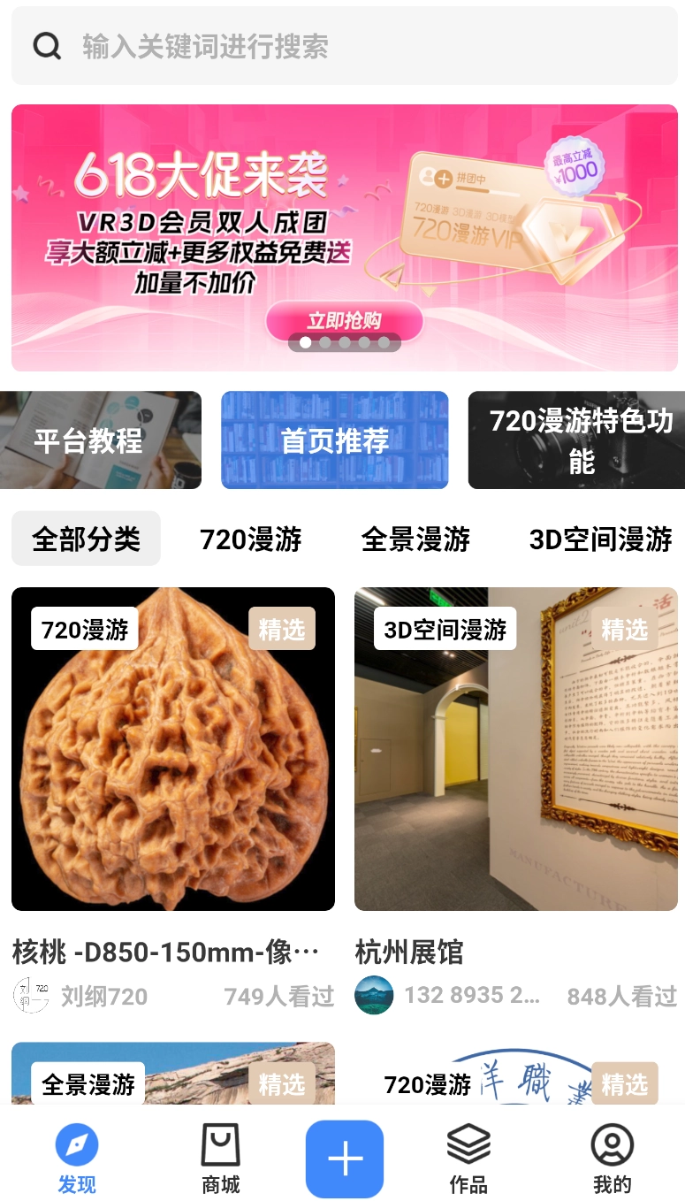 3、浏览作品:进入首页后,可在分类板块或推荐页面里,挑选自己感兴趣的全景作品并点击查看。