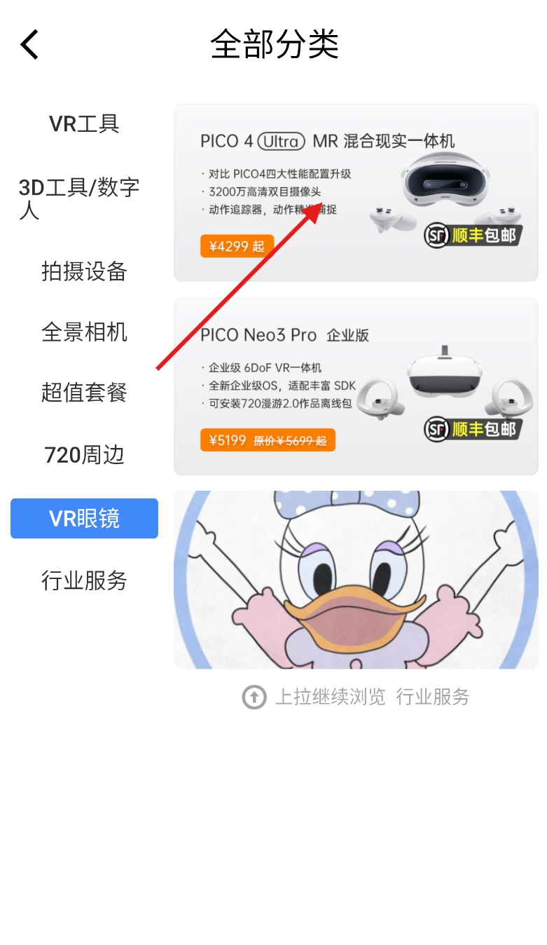 2、进入商城后,在众多商品分类中找到 “VR 眼镜” 板块,轻点进入该类别专区。