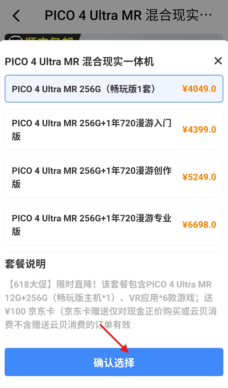 4、确定型号后,选择适配套餐,核对信息无误,点击购买按键完成下单操作。
