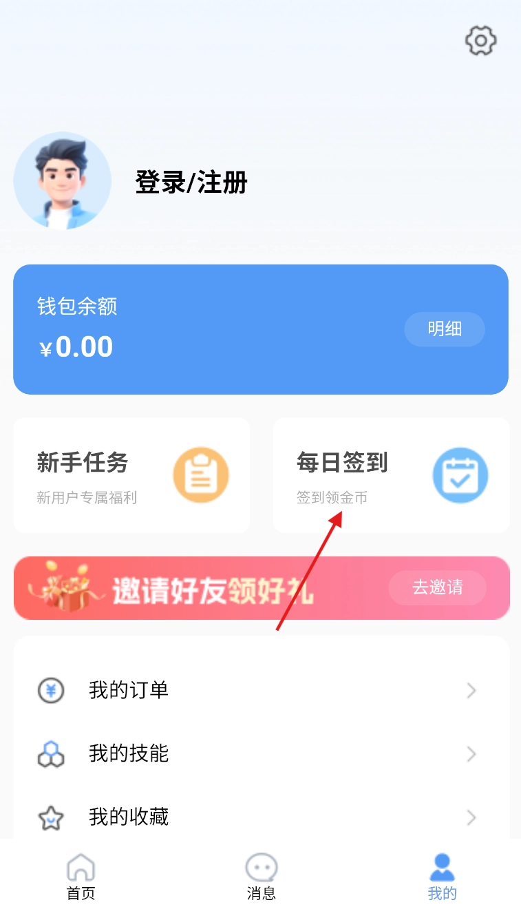 2、跳转至 “我的” 页面后,在功能列表中快速定位 “每日签到” 板块,点击进入签到界面。
