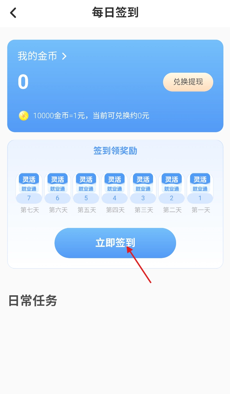 3、进入签到页面后,轻点“立即签到”按钮即可完成当日签到,轻松领取签到奖励。