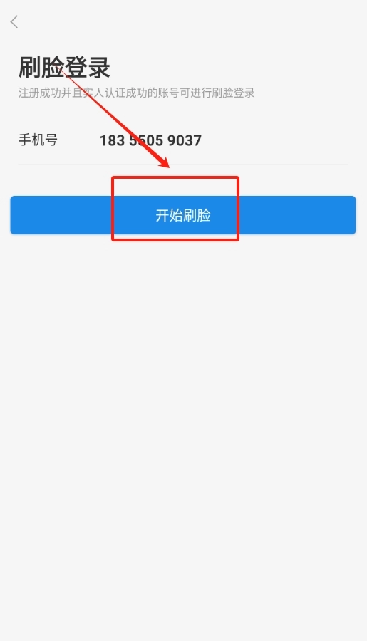 2、后续登录时无需再输入密码,直接点击右上角的刷脸登录选项并输入手机号码即可。