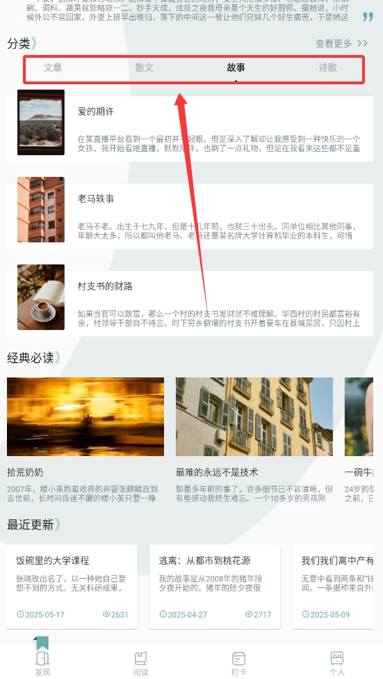 1、进入首页后,根据页面上的选项进行选择并点击进入文章,就能阅读完整内容了。