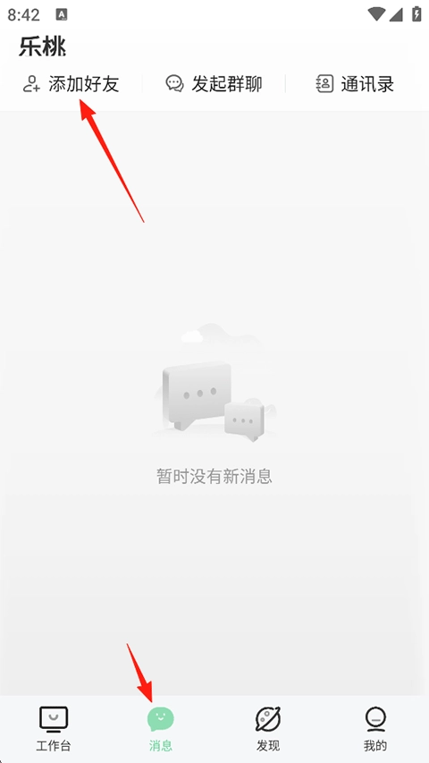 1、打开乐桃,点击消息-添加好友;