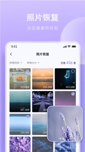 2、能够让用户便捷地管理相片,找回因各类原因丢失的相片