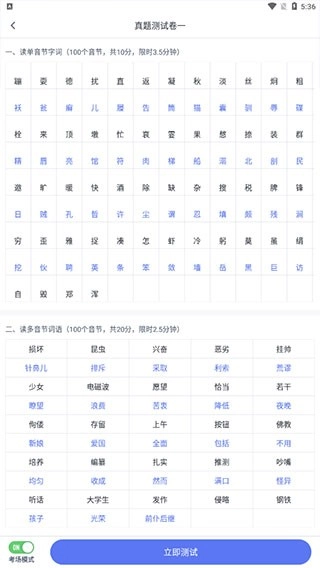 3、点击主界面的立即开始,就可以进行普通话测试了