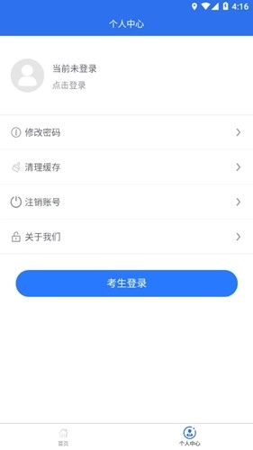 1、登录与注册:打开应用后,需先登录考生账号,若没有账号,可直接进行注册操作。