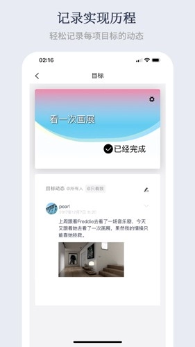 你能够自主规划完成任务的时间,也可以在目标之下记录过程中的各种动态,不管是细微的心情变化、偶尔的情绪宣泄,还是点滴的进步——当抵达终点时,回头看看自己一路走来的痕迹,那一定是一幅无比美丽的画面。