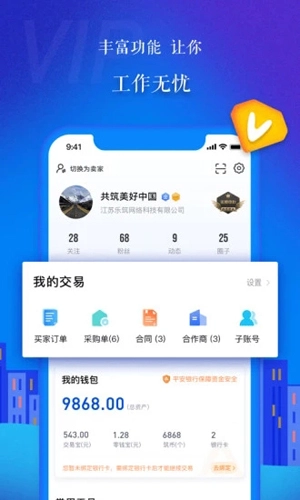 2、建筑材料采购:整合各类优质建材供应商资源,保障采购方能够获取性价比高的产品。