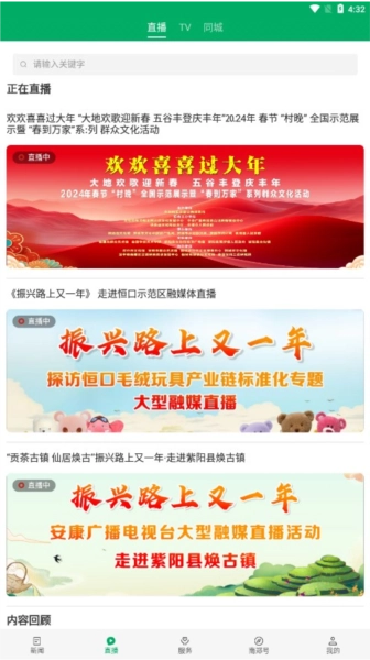 “爱南郑”平台聚焦本地需求,实时推送最新资讯,确保信息传递的时效性;用户可通过平台获取本地直播节目及新闻直播等动态内容;同时,平台整合了各类优质在线服务资源,助力用户高效便捷地办理各项事务。