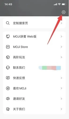 1、打开moji辞书,我的页面右上角设置。