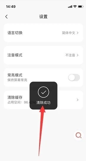 2、在设置页面下方点击清除缓存。
