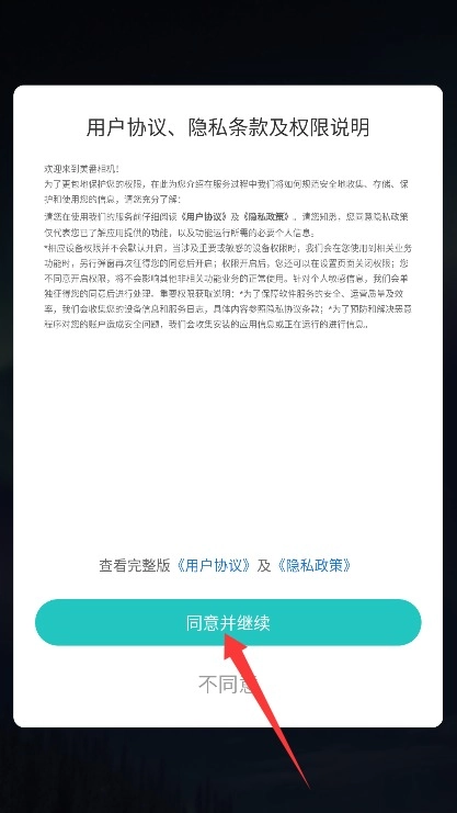 1、首次使用时,请仔细阅读平台的服务条款和隐私政策,确认无误后点击同意按钮,即可进入应用。
