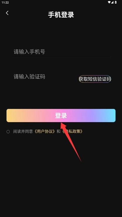 2、在登录页面填写手机号码,点击获取验证码的按钮,待收到验证码后输入,即可完成账号登录操作。