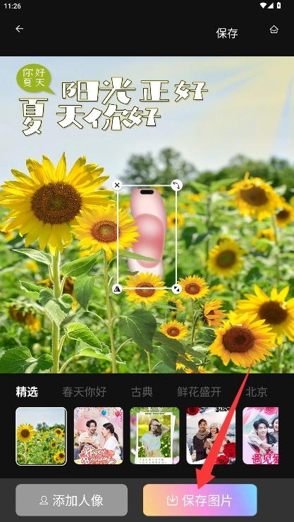 4、选择图片后系统会自动进行抠图处理,完成图片制作后点击保存图片,系统将自动把图片保存至本地相册。