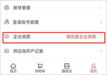 1、软件打开并完成注册登录操作后,进入“我的”页面,点击其中的“企业资质”选项。