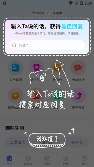 3、各类聊天技巧能够随时随地学习,土味情话也会实时更新。