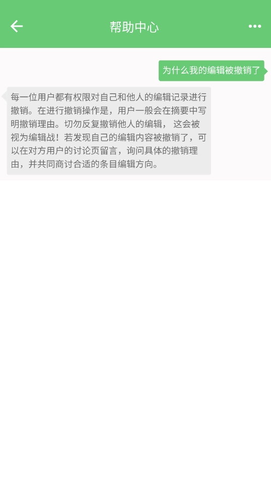 3、要是碰到有人回退我的修改或是出现编辑战的情况,可以在该页面的讨论区、提问求助区或是页面相关区里发起话题,和其他贡献者交流沟通,萌娘百科的维护人员会适时介入帮忙解决问题。