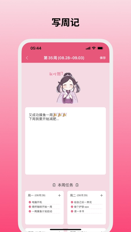 纯纯周记是一款的周计划工具,具备添加周记、任务管理、待办分类等功能,所有任务清单支持周视图与月视图的直观展示,便于用户清晰掌握待办计划,助力提升工作效率,欢迎有需要的用户使用。