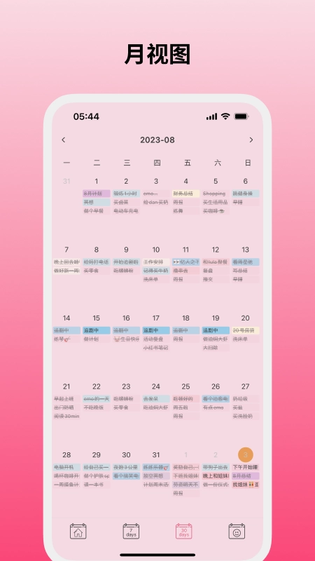 3.借助一目了然的周视图与月视图,所有任务都能在首页直观地展示出来