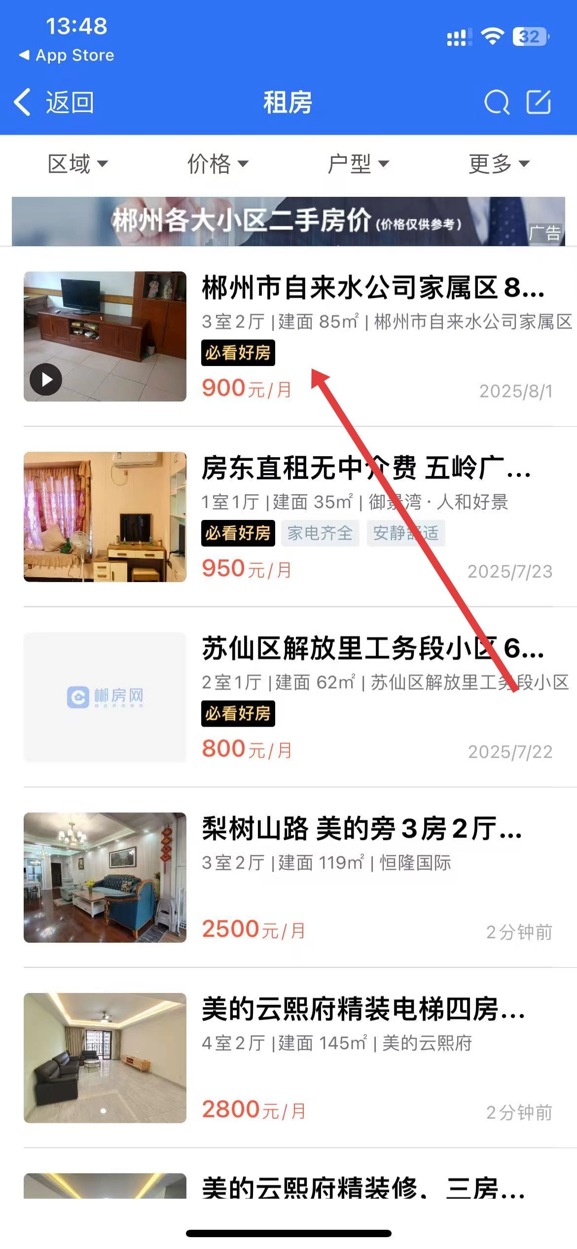3、浏览经过筛选的房源列表,点击自己心仪的房源,查看其详细信息。